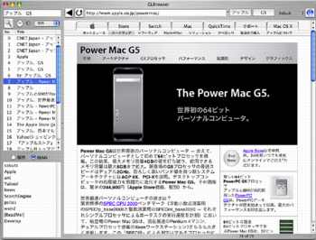 ちなみにSafariで定義したBook mark、および履歴は左下のリストに表示されています。ボタンをおすことで切り替えてください。ちなみに履歴は一度プログラムを終了するときれいさっぱり忘れます。昨日観たサイトをまた観ようなどと考えてはいけません。全ては明日にあるのです(何を書いているか自分でもよくわかりません)