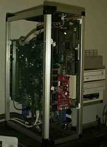 めざめるとさっそく作業開始である。それまで問題もあったが、なんとか動いていたTwinPowerMacはまたもや解体の憂き目をみることになった。寸法を取り直すとひたすらフレームの加工である。しかし一度やってみた経験というのは馬鹿にならないもので、今回は最初とは比較にならないくらいスムースに作業が進む。どこに気をつけるべきか。どこの構造はどうしたらいいか、などがだいたい頭に入っているからであろうか。予想を超えたペースである。