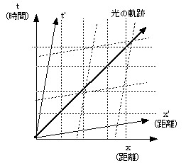 (注:上の図は「普通の物の見方」=ガリレオ変換に従った場合)