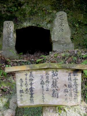 そこをでてだらだらと坂を下る。なにやら芭蕉がどうした、という立て札があり、洞窟がある。その昔芭蕉が観音堂の上で句を詠んだらしいのだが、洞窟は一体なんなのだろう。