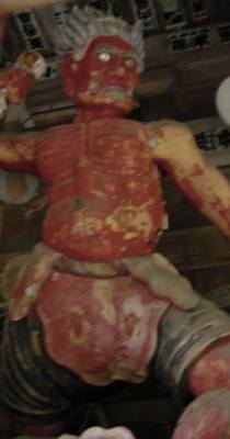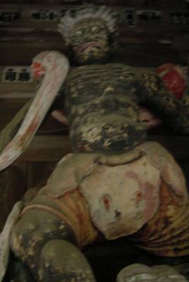 しばし眺めた後さて、ということで帰路に就く。普通門には仁王像がいると思うのだがここにいるのは風神と雷神だだなあ、と思ったらこちらは二天門といい、仁王門は別に存在しているのであった。右の風神のほうはおむつをしているようにも見える。