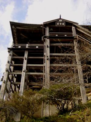 階段を上りきると足が結構張っている気がする。やれやれ、と思っているといきなり扉が開いて受付のお姉さんに声をかけられる。大人100円だから安いものだ。そこからぐるりとお堂を廻る。正面からみて左手に扉が開いており、大きな赤い提灯の向こうに観音さまだか何かがいる。(室内撮影禁止とのことで写真はとれなかったが)その隣に小さな部屋があり、9XX(数字忘れた)年前の床板です。入らないでくださいと書いてある。とはいってもあからさまに新しい板もしいてあるしなんだか箱もどさどさ置いてある。そんな古い板に荷物載せて大丈夫なのだろうか。