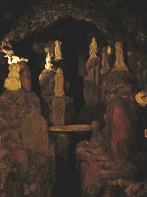 でこぼこした岩肌の中、何体もの観音やら仏像やらが飾られている。奥の方にはコンクリートが白い肌を見せ、滝のようになっているがもちろん水などは流れていない。そのうちあることに気がつく。音が全くないのだ。聞こえるのは耳鳴りくらい。