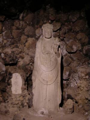 洞窟の壁がでこぼこした岩になる。観音がいる部屋も広くなっているのだが観て驚愕した。