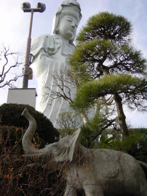 おかしい。あの車に乗ってきた人達はどこへいったのか、などと思いながら歩を進める。すると前方に白い大きな観音が見えてきた。