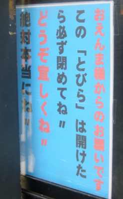 さて、えんま様はどこだ、と思うと正面にプラスティックの扉があり、左右にひらくようになっている。そこにはこう書かれている。