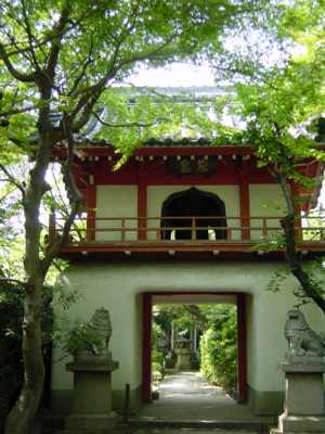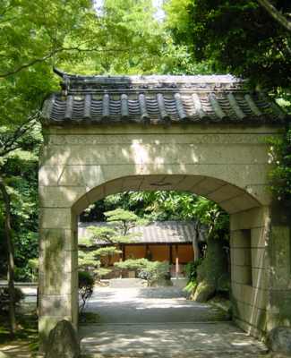 などと考えながらとぼとぼ暑い日を浴びながら歩く。まず駐車場が見え、次には入り口が見えた。まずちょっと変わった形の門が二つある。