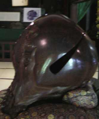 さっきの写真で田原の俊ちゃんが叩こうとしていた巨大木魚である。なんでも説明書きによれば「片手を触れるのみでも 過去の悪業が消滅する」とのこと。うさみ観音でみた「鯉に餌を授けることにより全ての罪が消えます」に比べればまだましかもしれないがさわるだけで全部OKと言われてもねえ。思わず天をあおげばこんなものが見える。
