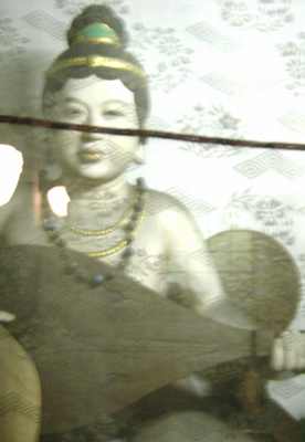 写真ではわかりにくいがこの観音にはいたるところ蜘蛛の巣が張っている。見ていると確かに思い出すことがある。佐和山遊園の偽金閣寺の中にいた変な像に顔の雰囲気が似ている。