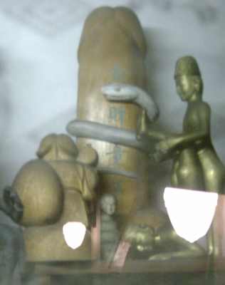 真ん中に蛇がいるが、その脇にはなんだかわからない像がある。これがラマ佛なのであろうか。露天は日差しが厳しい。早々に階段を下りる。