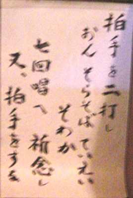 その先に進むとまたなにやら正面にある。その前にある賽銭箱にはお祈りの仕方が書かれているのだがそれはこんなのである。