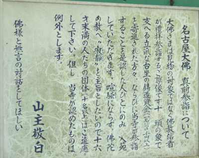 再び外にでると大仏という矢印に沿って歩く。途中にこんな看板がある。