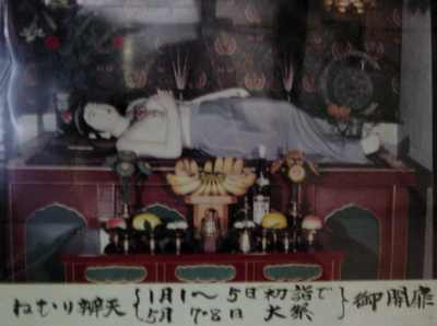 ご開帳は正月と5月のはじめという事なのだが、今日も扉は開いている。あるサイトを読むと腰巻きの裾をめくれるということなのだが、そんなことを考えもしなかった。今から考えても別に惜しかったとは思わない。ニコニコ園でめくって懲りたことでもあるし。