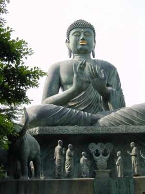 大仏の前には例によって「浄財」と書かれた箱があるのだがさっき1000円も払ったから大仏様も許してくれるであろう。後ろから大仏などながめてみると妙に人間の修行僧っぽい雰囲気がある。道を挟んだ反対側にはアパートがある。朝外を見ると大仏の後ろ姿と象が見えるアパート。なんだか素敵な気がするが、きっと3日もたてば飽きてしまうのだろう。