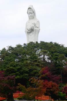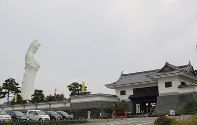 今日の目的地会津村にある大観音である。高岡住宅というバス停で降りると、さっきこっちに観音が見えたはずだが、、と歩き出す。ほどなく看板が見えた。近寄ってみるとなんだか小テーマパークのような立派な作りである。