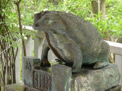 このほかにもやたら蛙がおおいなあと思って後で調べてみれば先ほどの場所は「ご祭神の少彦命名の使い神である蛙をまつっています」なのだそうだ。というわけで、手を洗うところにも蛙が居て水を吐いている。(口から糸のようにでているのが水)