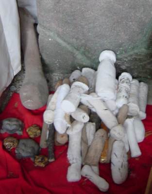 左手奥には「安産・子請授・婦人病など、女性の願いが叶う」とおぼしきエリアがあり、婦人用下着が袋に入れられているらしい。