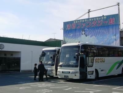 蒲郡で降りるとてくてく歩く。公式サイトには徒歩20分と書いてあるからそれなりに時間はかかる。しばらくして看板が目に入ってきた。さらには「蒲郡ファンタジー館前」と書いたバス停まで見えてくる。ということは結構メジャーなスポットとして認知されているのではないか。通りを右-海側に曲がるとそれは見えてきた。