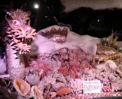 入ってしばらくは実にファンタジーな空間が続く。ものすごい数の貝が使われており、その労力には頭が下がる。この「ファンタジードラゴン」には八万個の貝が使われているとのこと。