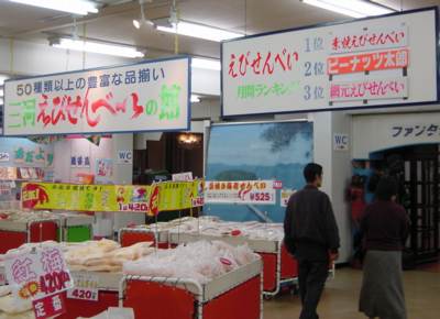 「えびせんべい月間ランキング」が素敵である。帰るときに気がついたのだがここには無料のコーヒーもあり、その太っ腹さに驚く。